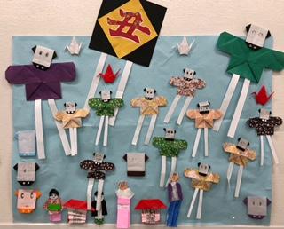 本日、工作プログラムでは、折り紙を利用して教室を飾り付けしました!