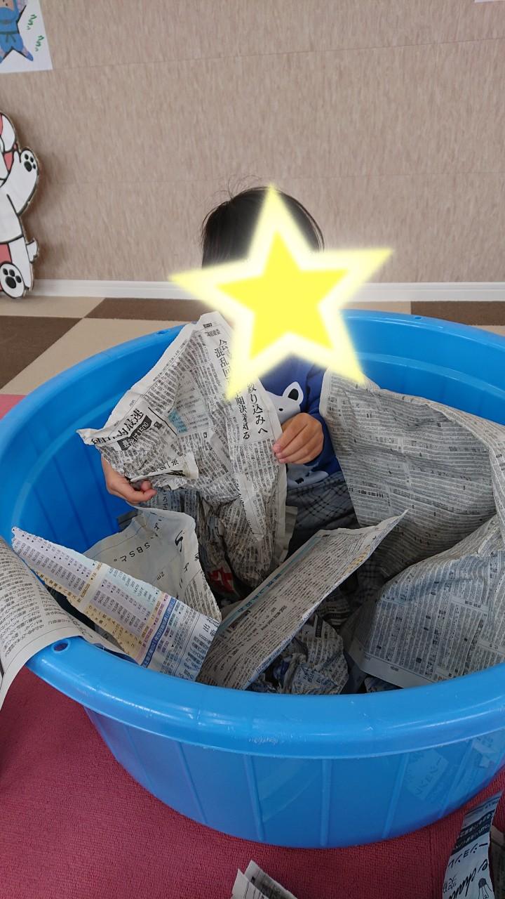 新聞ボール、新聞プール、ビリビリしたりぎゅうぎゅう握ったり…と笑顔いっぱいに楽しめました(^^)