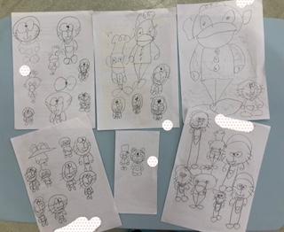 絵描き歌では、コックさん、ドラえもんなど歌に合わせて描きました!