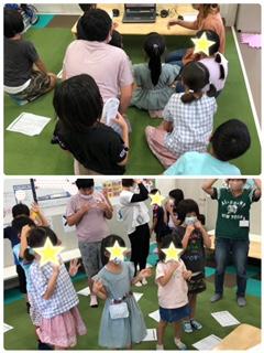 英語で遊ぼうでは、「Head, Shoulders, Knees and Toes 」をみんなで覚えて踊りました!