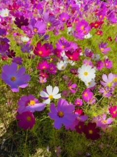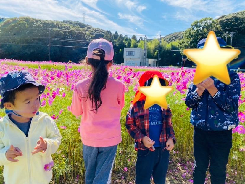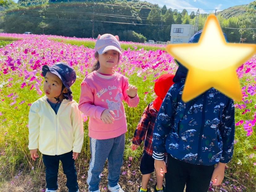 畑一面に広がるコスモスにみんな大喜びでした♪