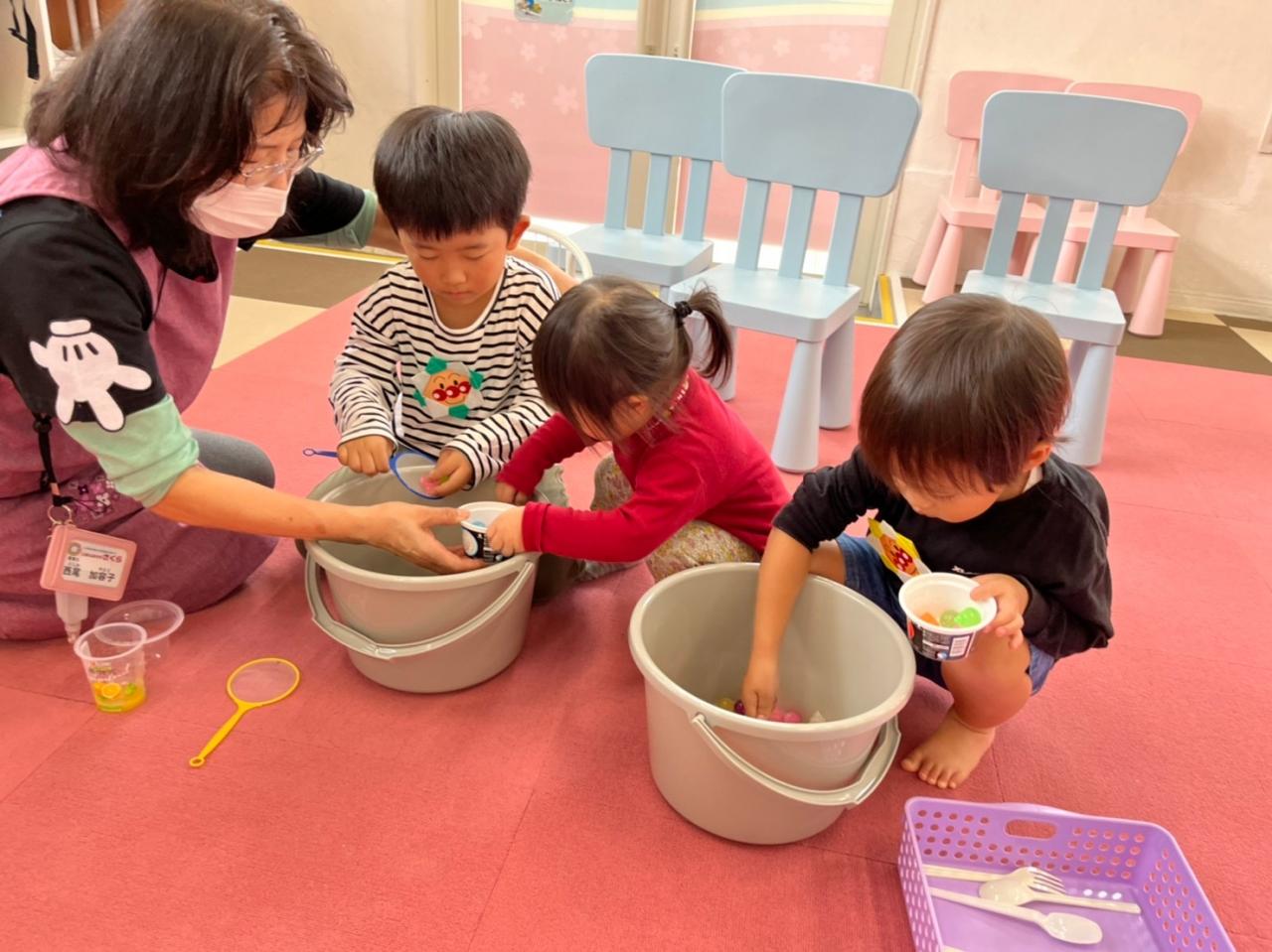 ボール投げ、スーパーボールすくい、紐くじ引き