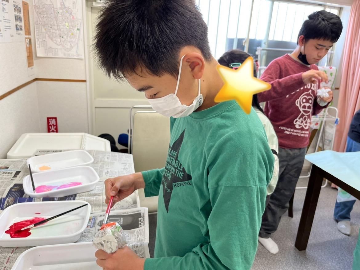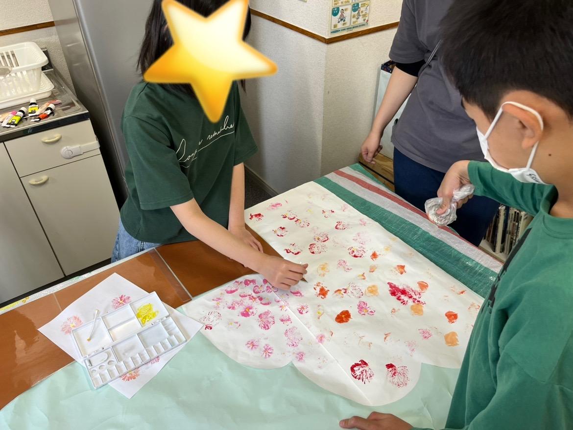 ビニールに空気を入れて絵の具を塗り、