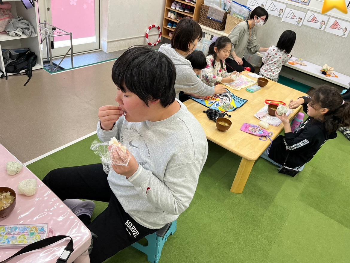 自分で選んだおにぎりの具と豚汁を皆んなで食べました!