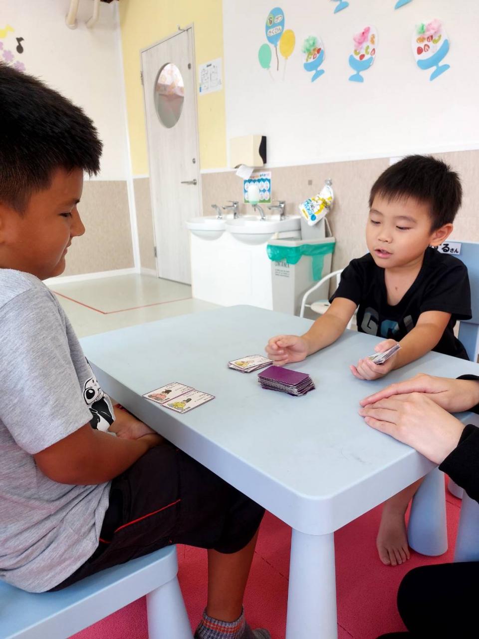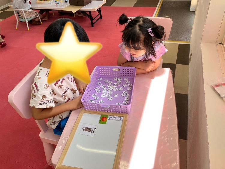 年長組は、友達と一緒に選んだ絵カードの平仮名を見つけて並べたり、書いたり、坊主めくりをしたりしました。