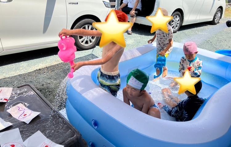 今日は、プログラムを水遊びに変更して行いました。