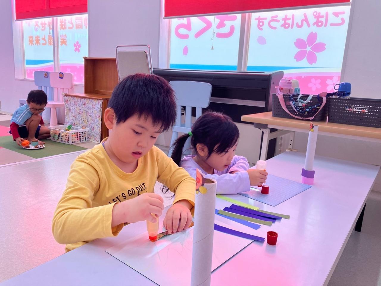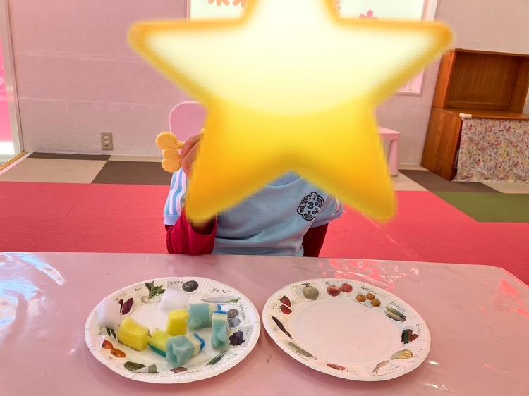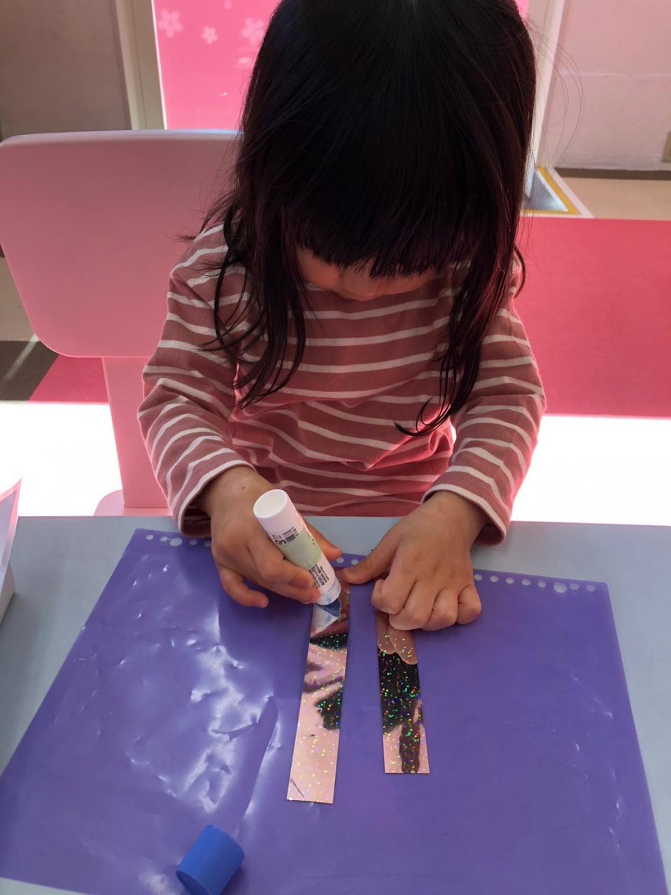 手先を使って折り紙でわっか作りをしたり、お箸でスポンジをつかむ練習をしたグループ。