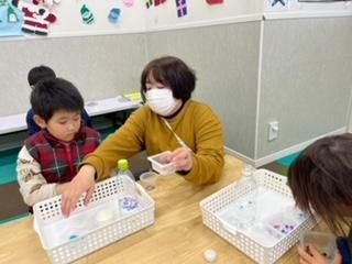 クリスマス工作ではセンサリーボトル作りにチャレンジです(✳︎´∨︎`✳︎)