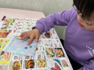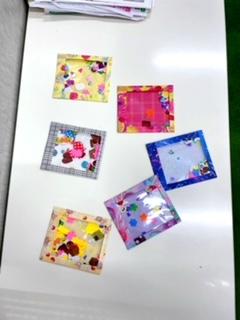 透明の袋に桜の形に切った画用紙や