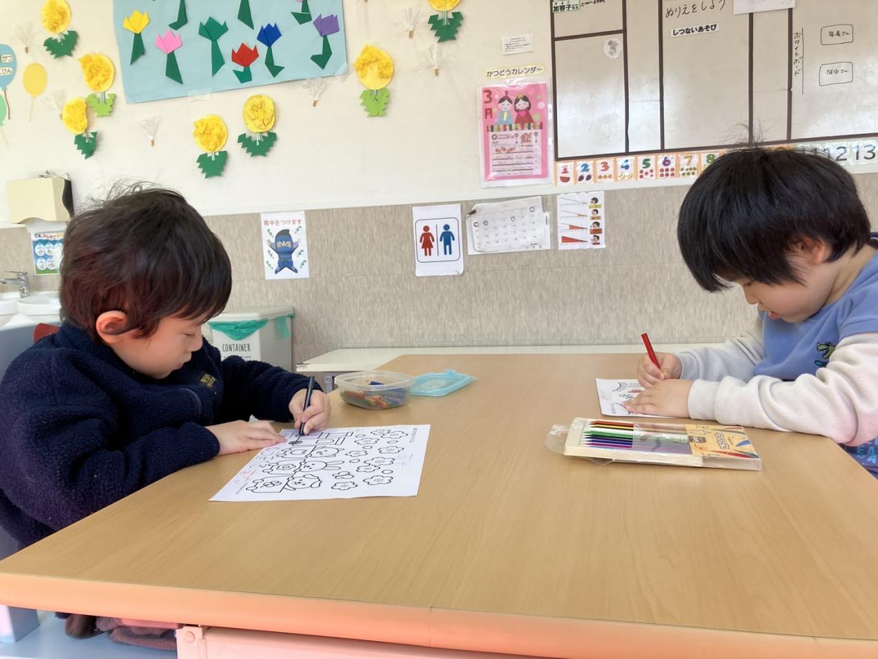 用意しておいた塗り絵プリントから自分たちで好きなものを選んで塗り絵に挑戦しました(๑❛ᴗ❛๑)