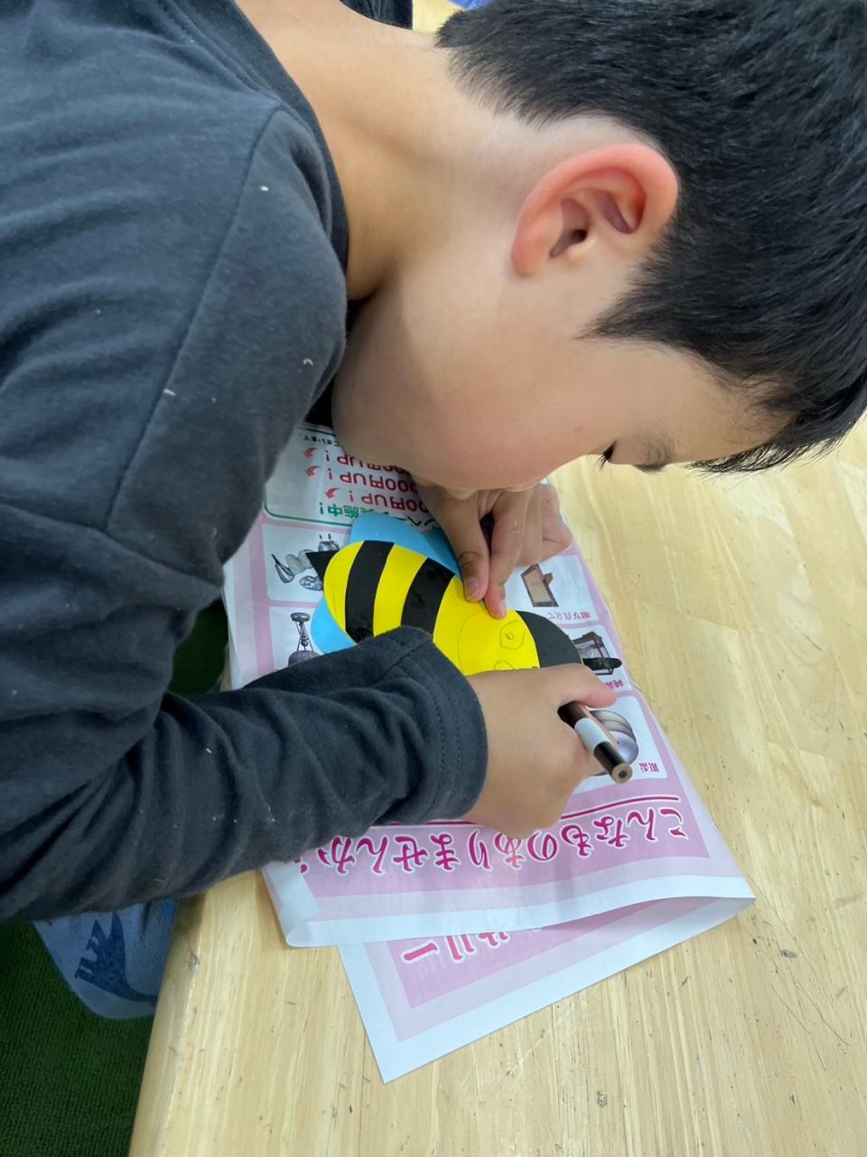 蝶々、蜂から好きな方を選び、顔や柄を描きました☆