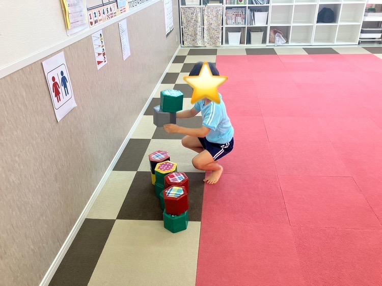 今日は、順番を守って積み木を運んだり片付けたりするなど友達と一緒に取り組む事に挑戦しました。