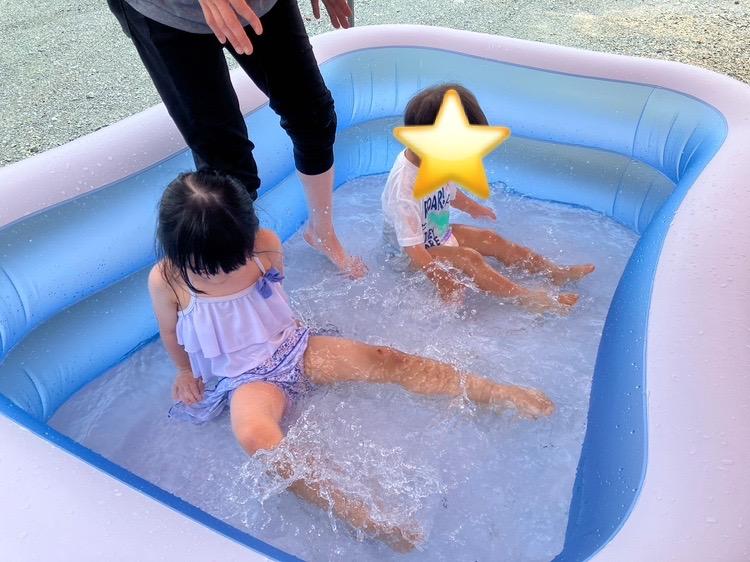 約束をしっかり聞いてから、こぱんで初めて水遊びができました。