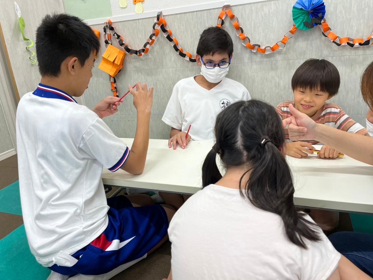 まずは体を使ったバランスゲームをし