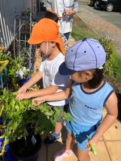 今日は、久しぶりに晴れたので個別プログラムの後に、外で野菜を収穫したり朝顔の種を取ったりしました☆