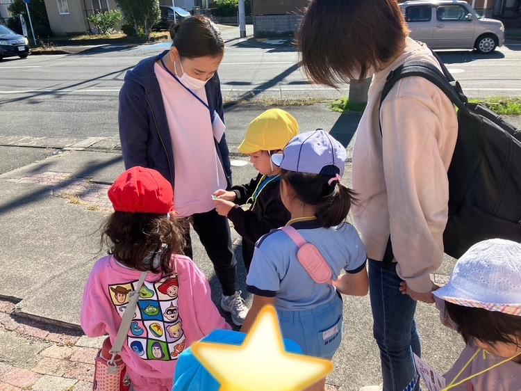 周りをよく見ながら散歩すると、信号や車、葉っぱなど沢山のものを見つけることができたね!