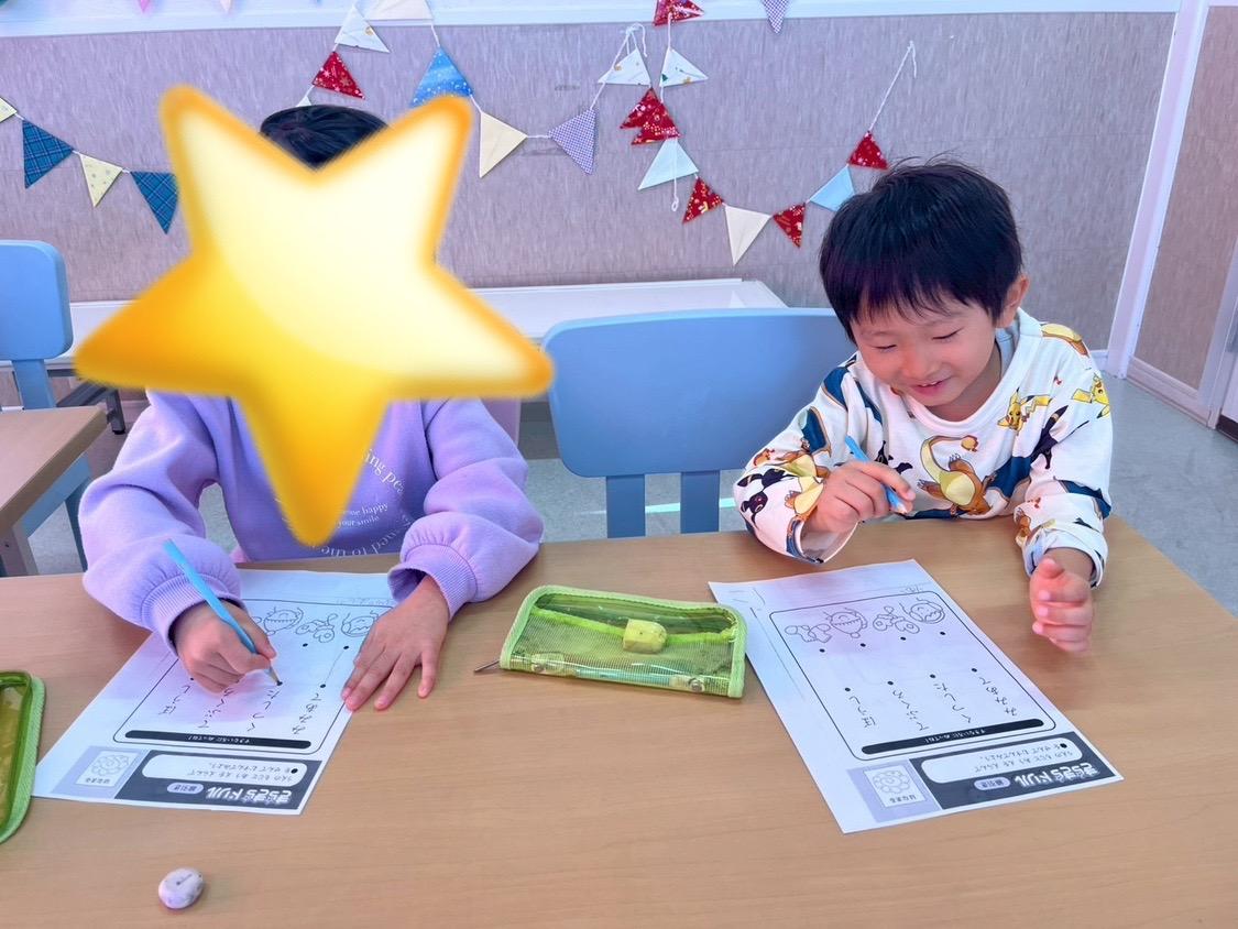 なぞり書きや運筆、シール貼りなどの指先運動を頑張ったね(๑´ㅂ`๑)