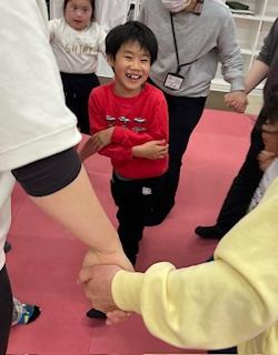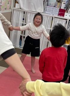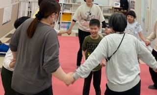 最後はリーダーを囲んで、みんなで手を繋ぎ、輪になって移動!