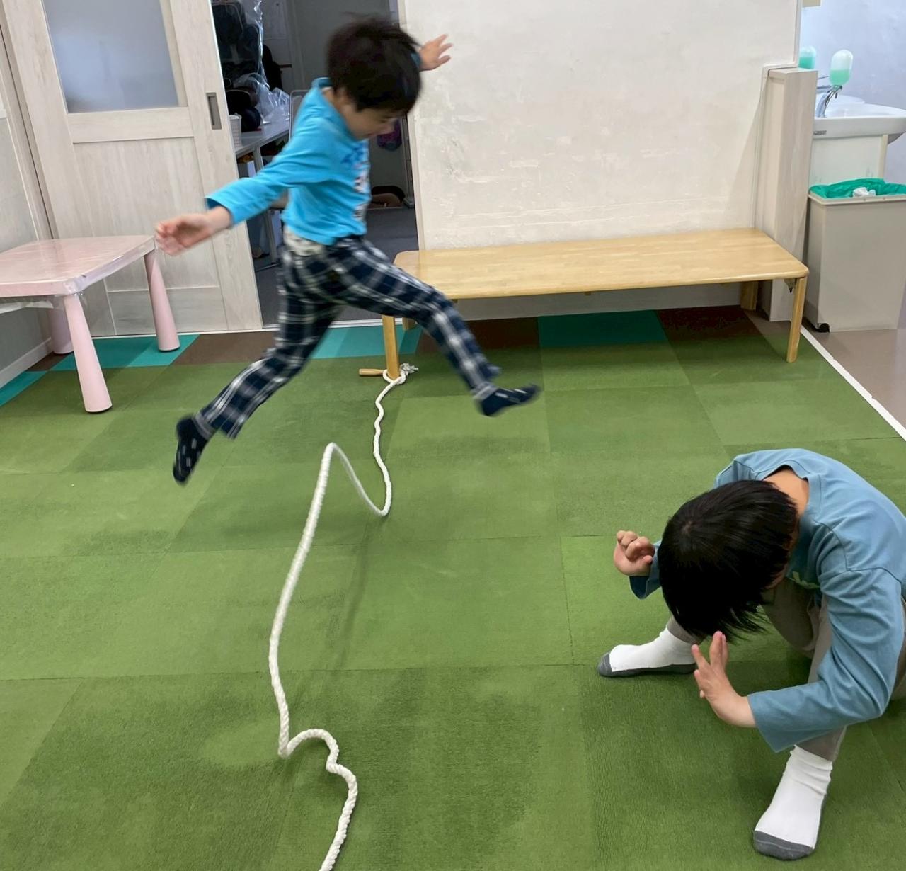 慣れてくると高さを上げて、とんだりくぐったりと楽しみながら挑戦しました(^-^)