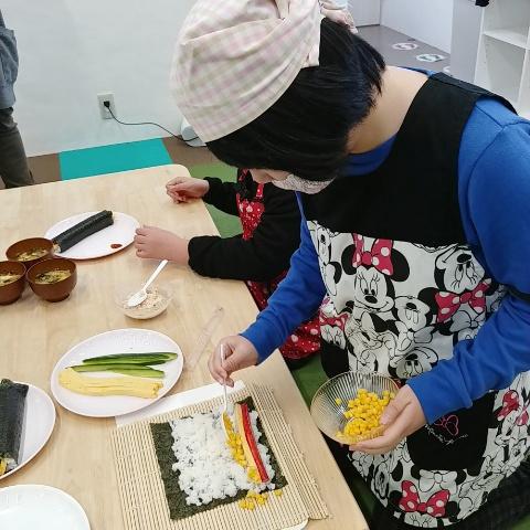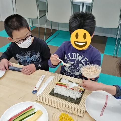 にこっとから帰ってきた後は、いよいよ恵方巻作りです!