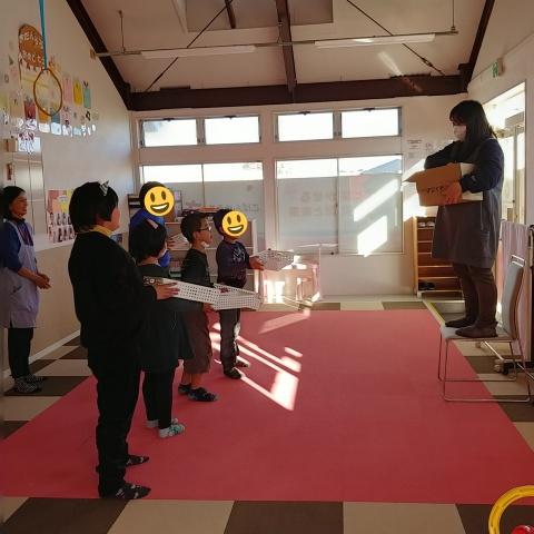 豆まき後、今度はみんながハッピーなおかしの豆まきへ♪