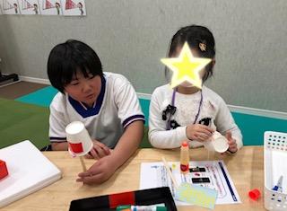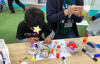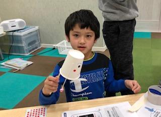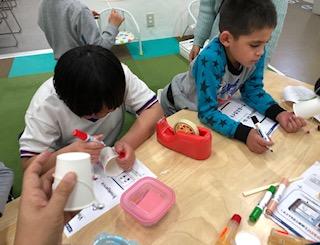紙コップに思い思いの絵をかいて、可愛いでんでん太鼓の完成です‼︎