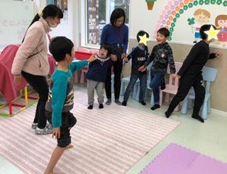 室内でも、みんなでひとつの活動を行うと楽しいね♪