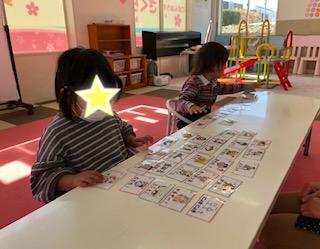 ことば遊びでは、カードを使って、たくさんの言葉を身振り手振りで表現してみました(^^)