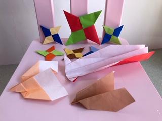 プログラム(折り紙)では、飛行機と手裏剣を折りました!