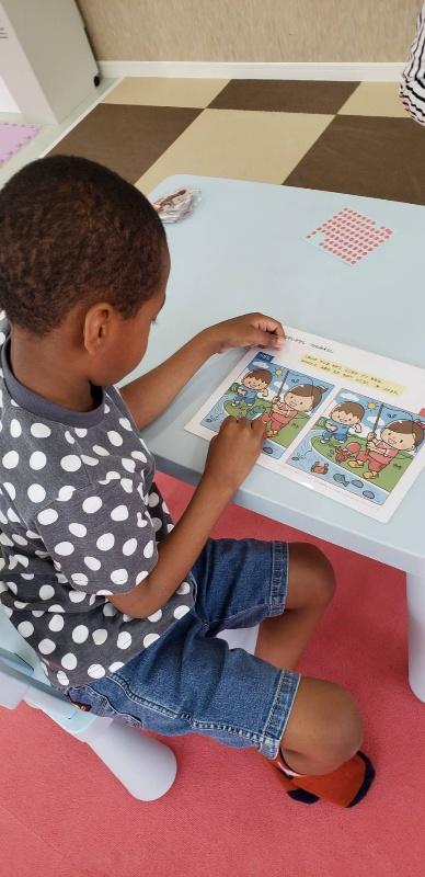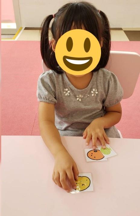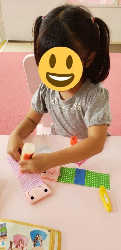食べ物の絵カードでどちらが好きか等、選択して相手に伝えることを狙いに取り組んだり、七夕に向けて、のりやハサミを丁寧に使って折り紙をやったりしました♪