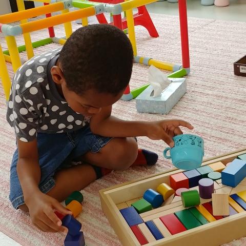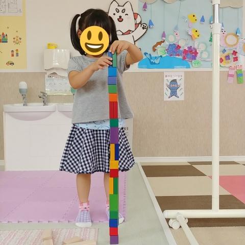 積み木では慎重にバランスをとりながら高く積み上げるのに成功(^o^)