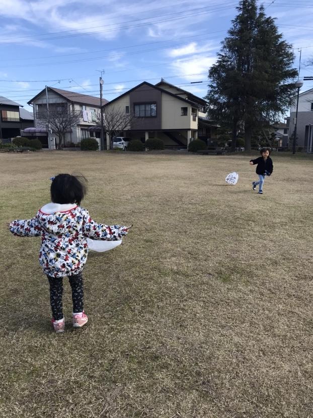 そして、完成した凧を持って公園で、凧あげに挑戦!!今日は風が少し弱かったですが、みんなが一生懸命走ってくれて、無事凧あげが出来ました(^^)