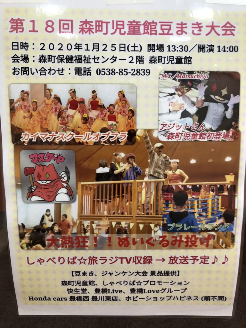 午後は森町児童館の豆まきイベントに行って来ました。フラダンスを見たり、じゃんけん大会に参加したり、お菓子まきにも参加させてもらいました♪