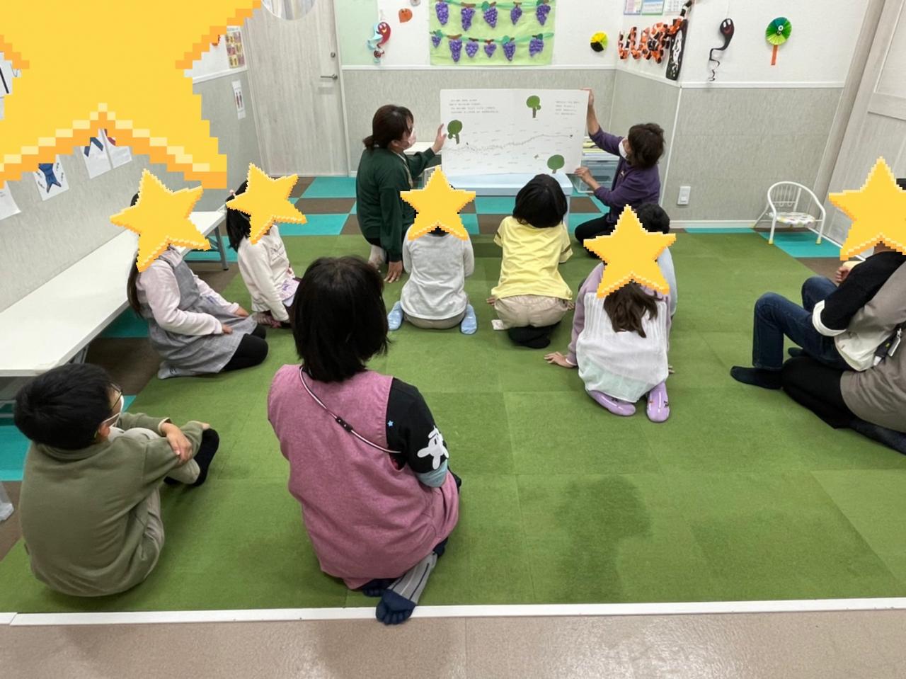 紙芝居を聞いている途中