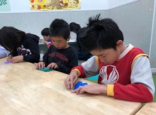 本日、工作プログラム「トントン相撲」では、折り紙、空き箱を利用して制作しました‼︎