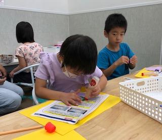 本日、工作プログラム「くるくるお魚ロケット」では、トイレットペーパーの芯を利用して制作しました!