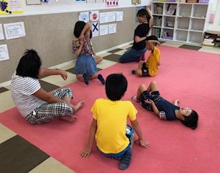 本日、運動プログラム、フラフープ遊びでは、ペアを組んで取り組みました‼︎