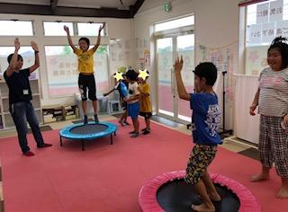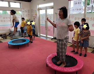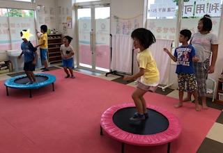 ゆっくりストレッチで体をほぐしたら、5種類のトランポリンに挑戦!