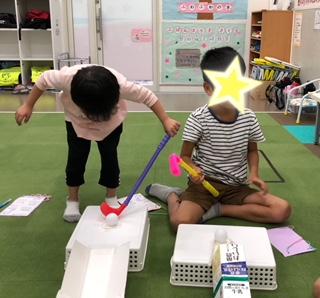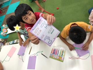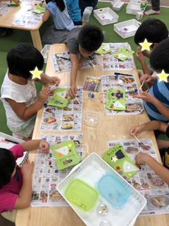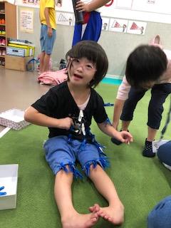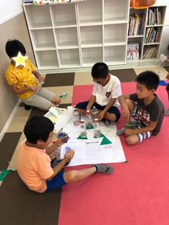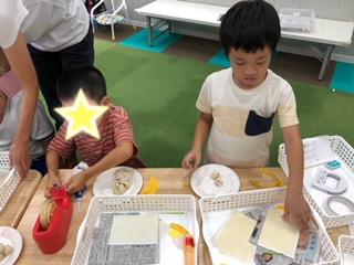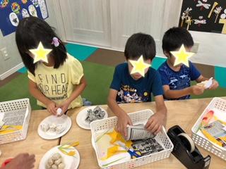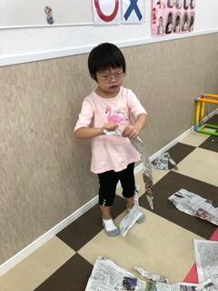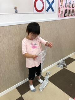 新聞紙を丸めたり、はさみを使ったり、のりやセロハンテープなども使ったり手先を使った作業になりました♪