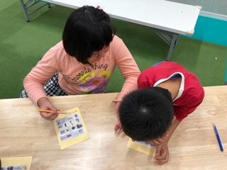 出てきたものの絵に印をつけたらあとはビンゴになるまでがんばるぞ〜♪