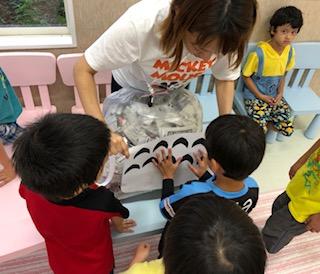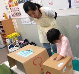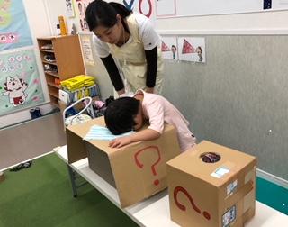 箱の中に手を入れて掴んで出したら「これな〜んだ⁇」