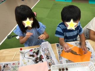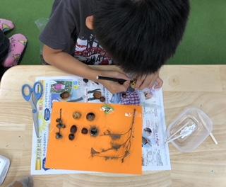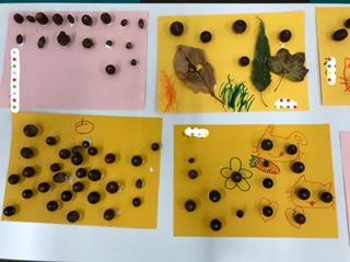 いろいろな形のどんぐりや落ち葉を拾いました‼︎