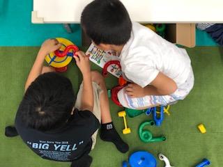 お友だちとくみくみスロープを組み立て中♪