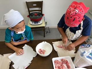 お肉担当、玉ねぎ担当…など班を作って担当を決めました‼︎