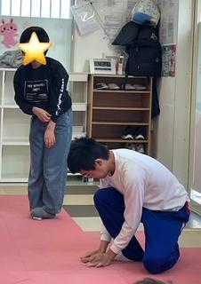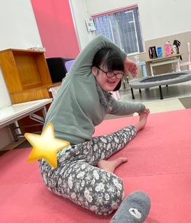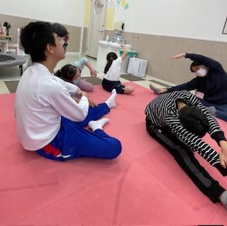 スタッフの動きをよく見ながら、ゆっくり呼吸を整えてストレッチを行いました。