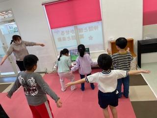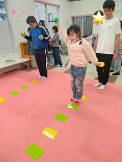 順番を守りながら、大きくジャンプしたり、くるっと回ってみたり、じゃんけんをしたりと、いろいろなことにチャレンジしました(^-^)