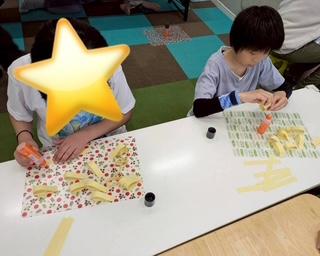 今日の午前中は壁面に貼る大きな作品を制作しました。