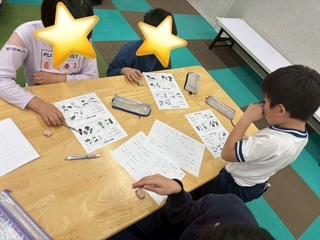 「わかった!」とすぐに書き始める子もいれば、じっくり考えて丸をつける子もいて、それぞれのペースで集中して取り組むことができました☆