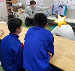 最初は「慣用句ってどんなもの?」から始まり、パソコン画面のイラストを見て、「◯には何が入るかな?」と、みんなで考えました。