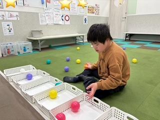 音楽が止まってスタッフが「◯◯色!」と指示した色のボールを素早く取りに行きます!